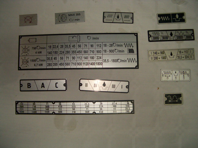 Wykonujemy tabliczki informacyjne do maszyn wg wzoru - na zdjęciu kpl. tabliczek do tokarki TUD40/50.